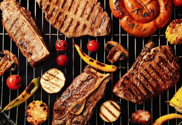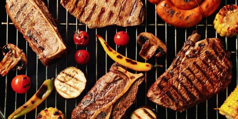 Pyszne, grillowane mięso przygotowywane na naturalnym drewnie podczas rejsu.